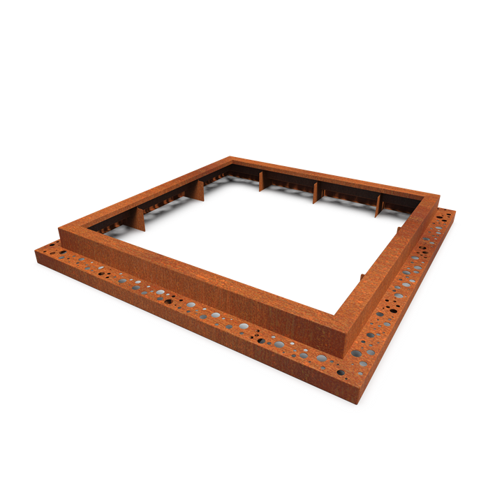 Cortenstaal:  Cortenstaal ook wel bekend als weervast staal, is een metaallegering bestaande uit ijzer waaraan koper, silicium, nikkel en chroom zijn toegevoegd. Cortenstaal wordt bij blootstelling aan de buitenlucht bedekt met een beschermende roest laag. Deze natuurlijke vaste roest laag vormt de bescherming tegen verdere corrosie. Kenmerkend voor Cortenstaal is de bruinoranje roestkleur en de lange levensduur. Producten worden ongeroest aangeleverd