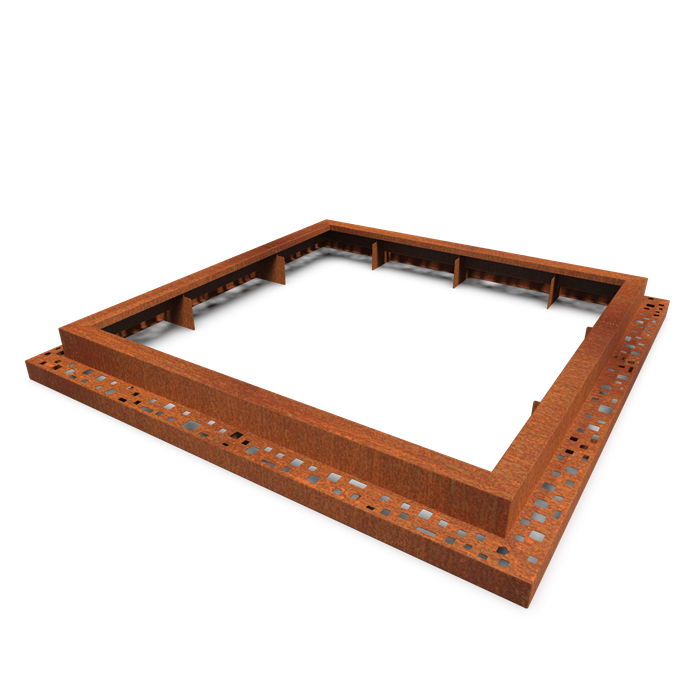 Cortenstaal:  Cortenstaal ook wel bekend als weervast staal, is een metaallegering bestaande uit ijzer waaraan koper, silicium, nikkel en chroom zijn toegevoegd. Cortenstaal wordt bij blootstelling aan de buitenlucht bedekt met een beschermende roest laag. Deze natuurlijke vaste roest laag vormt de bescherming tegen verdere corrosie. Kenmerkend voor Cortenstaal is de bruinoranje roestkleur en de lange levensduur. Producten worden ongeroest aangeleverd