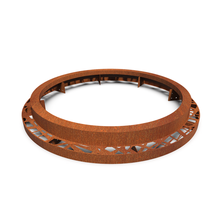 Cortenstaal:  Cortenstaal ook wel bekend als weervast staal, is een metaallegering bestaande uit ijzer waaraan koper, silicium, nikkel en chroom zijn toegevoegd. Cortenstaal wordt bij blootstelling aan de buitenlucht bedekt met een beschermende roest laag. Deze natuurlijke vaste roest laag vormt de bescherming tegen verdere corrosie. Kenmerkend voor Cortenstaal is de bruinoranje roestkleur en de lange levensduur. Producten worden ongeroest aangeleverd