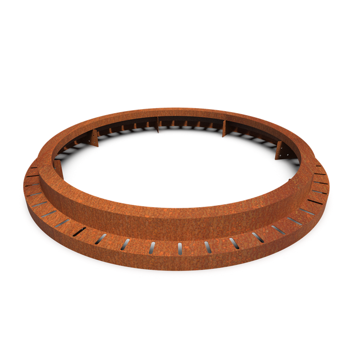 Cortenstaal:  Cortenstaal ook wel bekend als weervast staal, is een metaallegering bestaande uit ijzer waaraan koper, silicium, nikkel en chroom zijn toegevoegd. Cortenstaal wordt bij blootstelling aan de buitenlucht bedekt met een beschermende roest laag. Deze natuurlijke vaste roest laag vormt de bescherming tegen verdere corrosie. Kenmerkend voor Cortenstaal is de bruinoranje roestkleur en de lange levensduur. Producten worden ongeroest aangeleverd