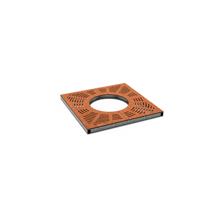 Cortenstaal:  Dikwandig Cortenstaal leent zich uitstekend voor het produceren van boomroosters.. Producten worden ongeroest aangeleverd.