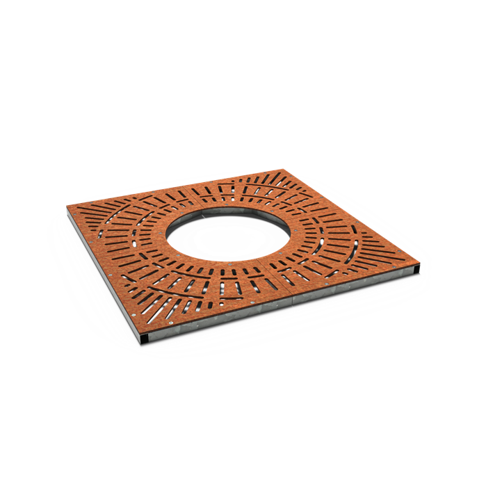 Cortenstaal:  Dikwandig Cortenstaal leent zich uitstekend voor het produceren van boomroosters.. Producten worden ongeroest aangeleverd.