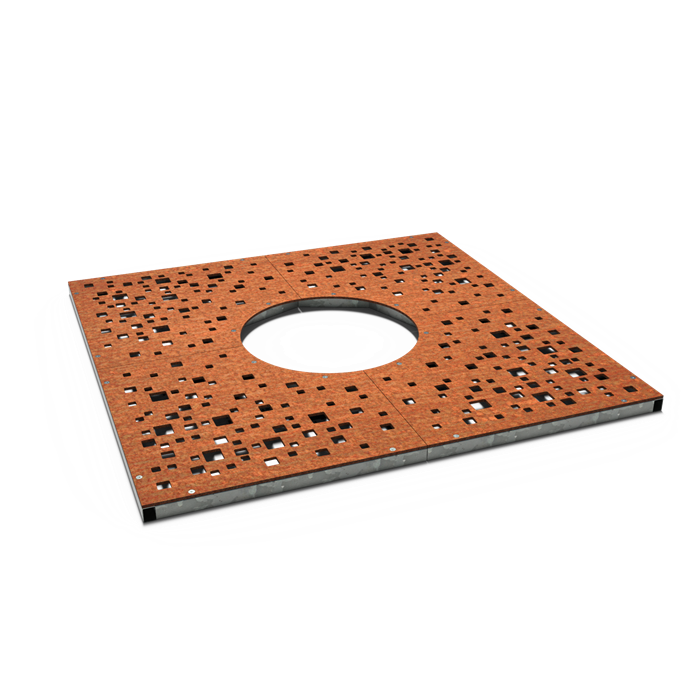Cortenstaal:  Dikwandig Cortenstaal leent zich uitstekend voor het produceren van boomroosters.. Producten worden ongeroest aangeleverd.