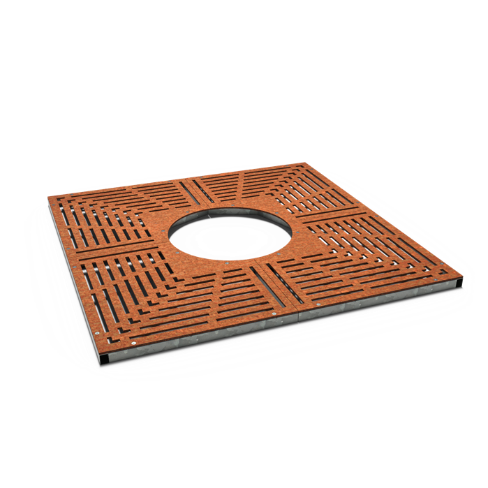 Cortenstaal:  Dikwandig Cortenstaal leent zich uitstekend voor het produceren van boomroosters.. Producten worden ongeroest aangeleverd.